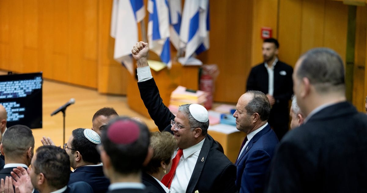 Porté par la députée Limor Son Har Melech, du parti nationaliste d’extrême droite Otzma Yehudit (Puissance juive), dirigé par Ben Gvir, et par Nissim Vaturi, vice-président de la Knesset issu du Likoud (le parti de Benyamin Netanyahou), le texte a été approuvé lundi 30 mars au soir par une majorité de 62 députés. Parmi eux, Netanyahou lui-même, présent lors du vote et remercié à son issue pour son soutien par Son Har Melech. 48 députés ont voté contre, un s’est abstenu.